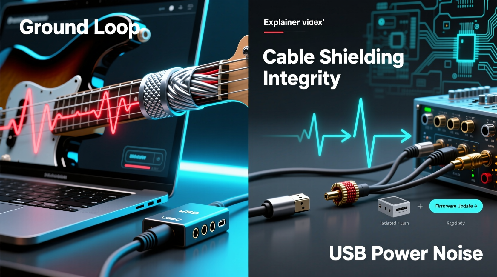 - Noisy USB power: Modern laptops deliver <±5% voltage regulation on USB-C PD lines; ripple exceeding 15 mVpp directly modulates analog preamp stages in budget interfaces (e.g., Focusrite Scarlett Solo Gen 4).
