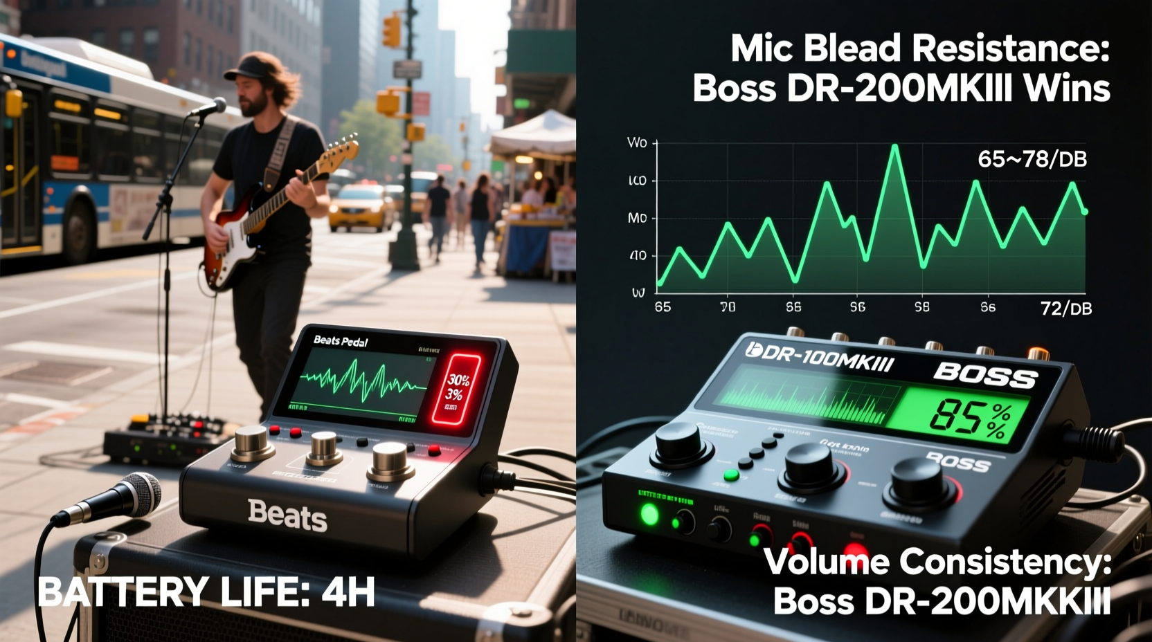 Verdict: Boss DR-100MKII Is the Superior Choice for 2026 Busking — Longer Battery Life, Stable Volume Output, and Far Better Mic Bleed Resistance Than Beats Pedal