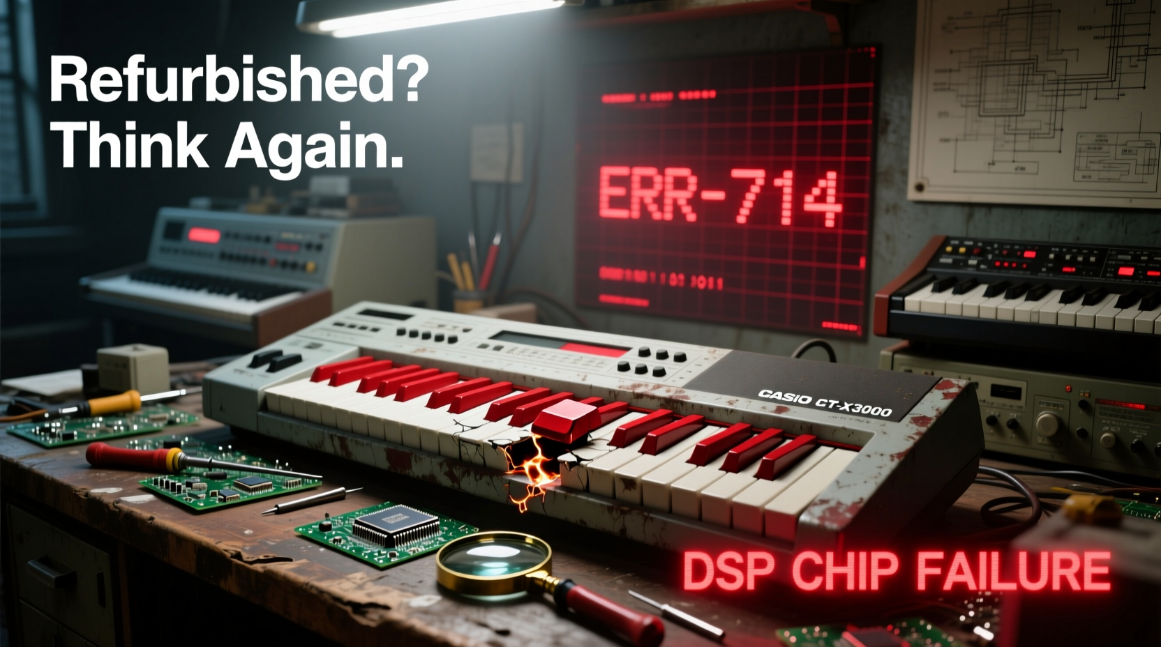 When buying a Casio CT-X3000 second-hand in 2026, the top red flags are cracked or warped keys (especially white keys near the bass register), firmware lockouts preventing OS updates or USB MIDI functionality, and misleading 'refurbished' claims that conceal non-functional DSP chips — a critical failure point affecting tone engine responsiveness, layering, and effects processing. These issues are not cosmetic; they directly impair playability, reliability, and long-term value.