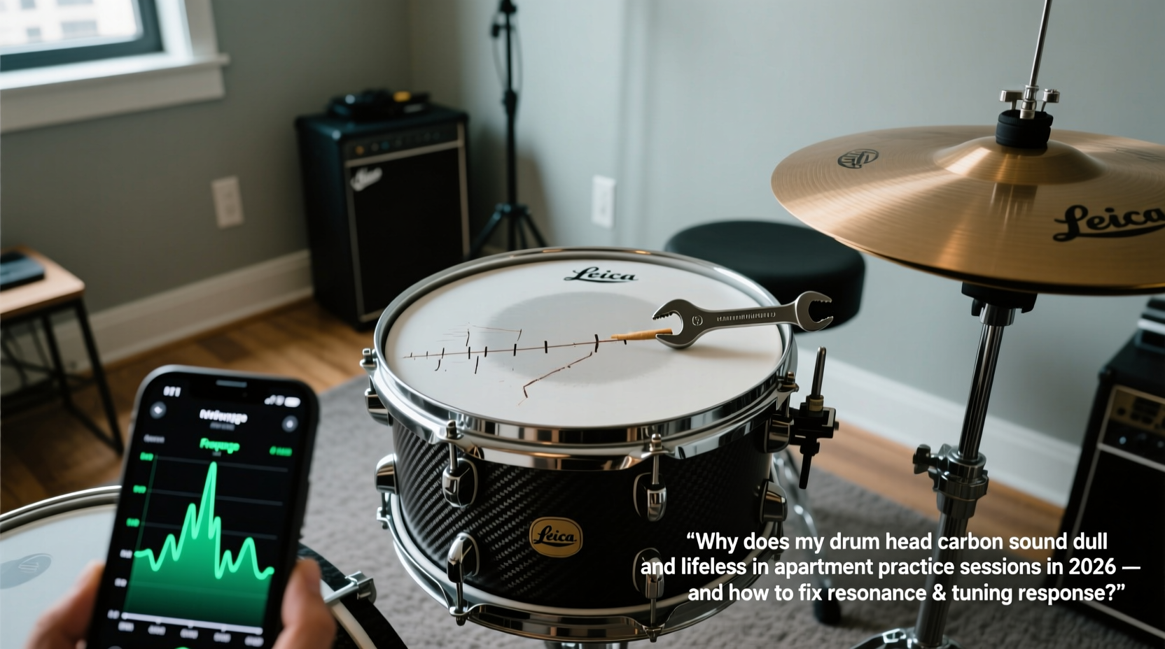 Your carbon-fiber drum head sounds dull and lifeless in apartment practice sessions primarily due to excessive low-frequency absorption by soft furnishings, lack of reflective surfaces, improper mounting tension, and inherent damping characteristics of carbon fiber under low-SPL (sound pressure level) playing—especially at sub-100 Hz resonances. The fix combines acoustic tuning (head tension mapping + dampening optimization), room-aware setup (elevation, isolation, boundary management), and signal-aware amplification (preamp EQ + transient shaping).