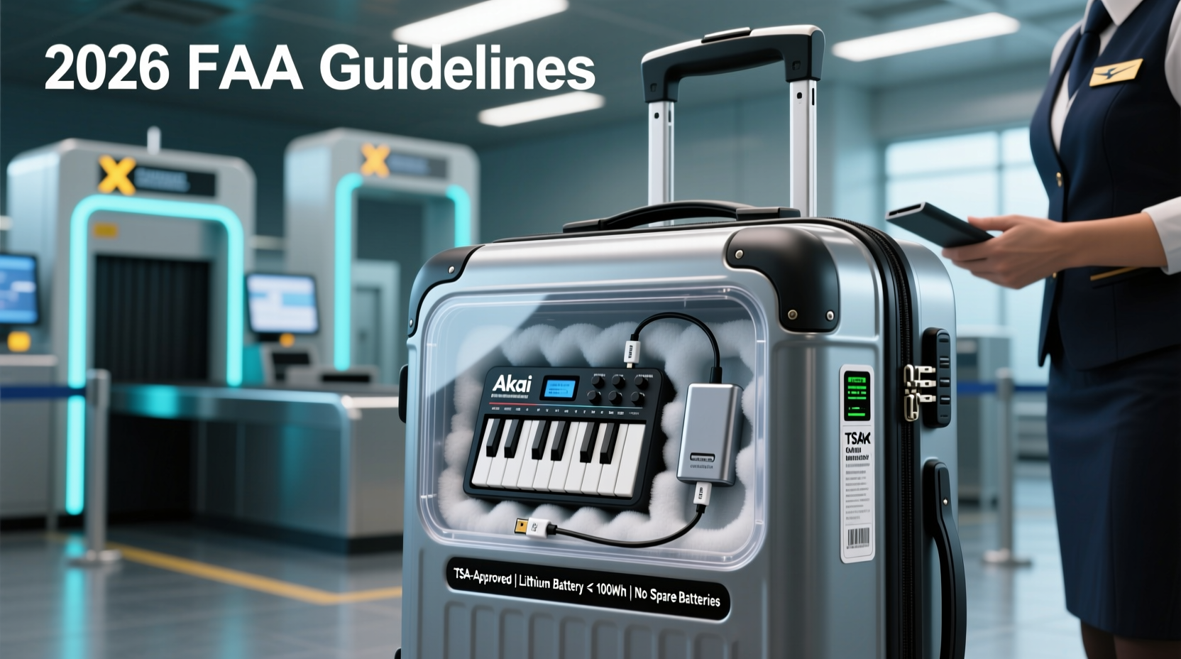 Yes — you can safely fly with an Akai MPK Mini Mk3 (or Mk2) in 2026 as carry-on luggage, provided it’s packed in a TSA-compliant case, contains no prohibited lithium batteries beyond the built-in rechargeable (≤100 Wh), and all cables are neatly coiled and accessible for inspection.