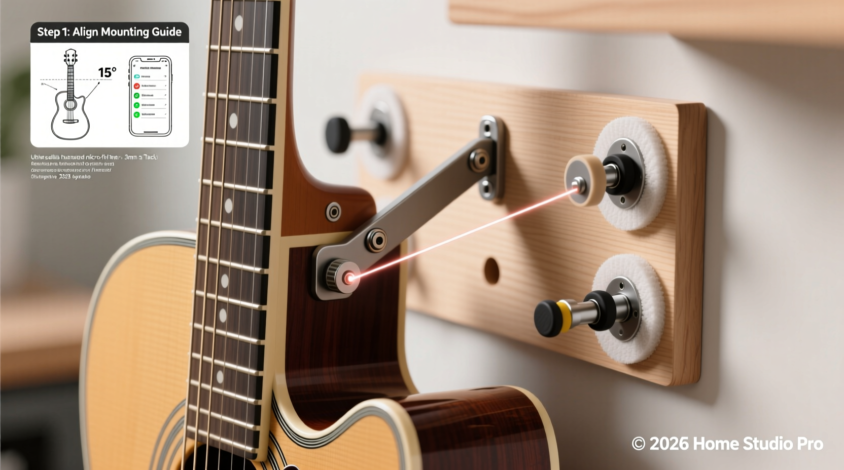 - Store guitar and bracket hardware in your studio for ≥48 hours at stable 65–70°F / 45–55% RH
