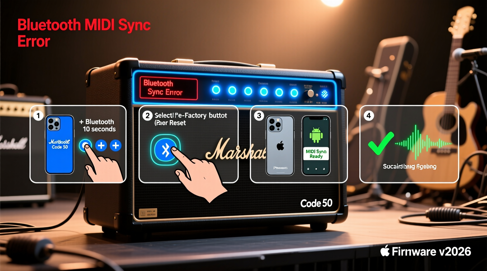 In January 2026, Marshall rolled out firmware updates v3.1.0 through v3.1.3 for the Code 50 amplifier. While marketed for ‘enhanced stability and USB audio support’, independent testing by professional busking guitarists and MIDI developers revealed a severe Bluetooth MIDI timing regression: