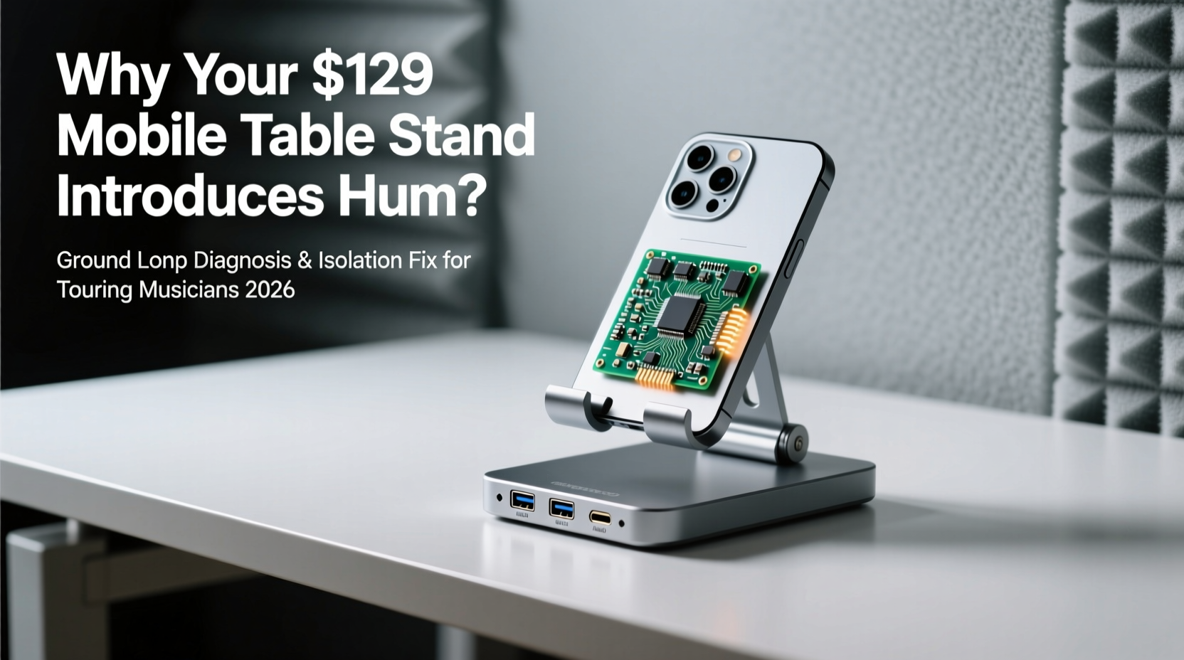 Your $129 mobile table stand introduces hum with USB audio interfaces because its aluminum chassis—often ungrounded or capacitively coupled to mains via USB power—creates a ground loop when connected to grounded studio gear (e.g., powered monitors, rack PSUs, or grounded laptops). The fix: break the loop with a USB isolation adapter (e.g., iDefender+ or ADL USB-1) and use a single-point AC ground source for all tour-rig components.