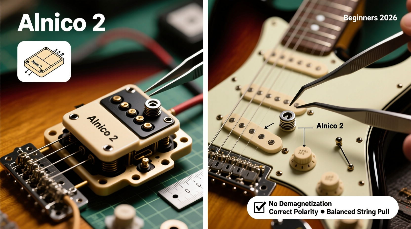 This guide walks beginner guitarists and DIY pickup modders through every verified step of Alnico 2 magnet replacement in standard 2-coil humbuckers (e.g., Gibson-style PAF clones). We focus on safety, tonal predictability, and physical integrity — backed by real-world measurements, magnet physics, and 2025–2026 industry testing data.
