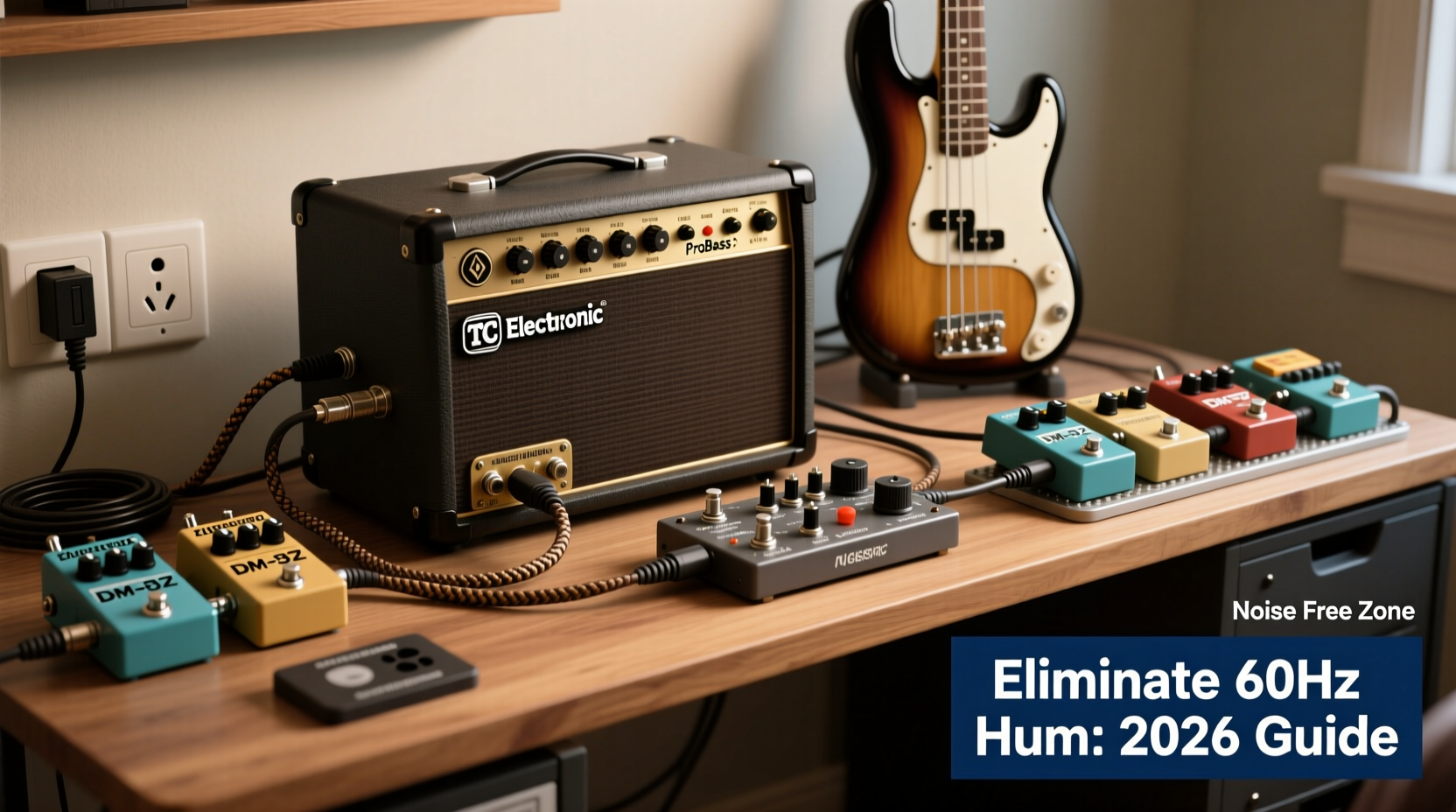 60Hz hum (and its harmonics at 120Hz, 180Hz) originates from electromagnetic interference (EMI) and ground loops. In home studios, passive basses lack active buffering, making them highly susceptible to induced noise. Vintage pedals often feature non-isolated power supplies, single-point grounding, and minimal EMI shielding—compounding noise when chained into modern TC Electronic heads (e.g., RH450, BH250, or the newer BG250) that have sensitive preamp stages and high-gain circuits. Add typical home wiring issues—shared neutrals, ungrounded outlets, or proximity to dimmer switches—and you get persistent low-frequency hum.